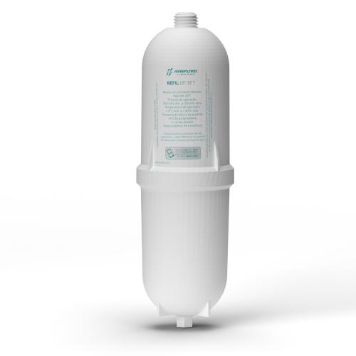 REFIL PARA PURIFICADOR ELÉTRICO HF-SFT Elimina resíduos sólidos e índices de cloro, deixando a água livre de sabores e odores indesejáveis; Sistema de filtração inovador de Carbon Block -Tudo em 1: retém sedimentos, reduz cloro, gosto e odores apenas com uma tecnologia de filtração, sem a necessidade de um elemento filtrante em polipropileno; Evita caminhos viciosos, garantindo uma excelente decloração até o fim da vida útil do refil Produto amigo do meio ambiente: Redução de plástico no processo de fabricação. Retenção de partículas Classe C.