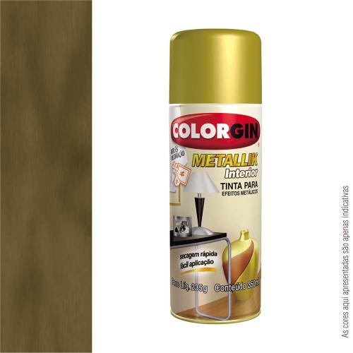 Tinta Spray Colorgin Metallik 350 ml COLORGIN METALLIK é uma tinta acrílica em spray especialmente desenvolvida para proporcionar efeitos metálicos que valorizam objetos artesanais, decorações internas, ferro, gesso, madeira, cerâmica, papel e metal. O produto, quando aplicado conforme instruções abaixo (vide IMPORTANTE), tem excelente desempenho. Dicas: Agite bem a lata antes e durante o uso. Aplique a uma distância de 25cm da superfície.